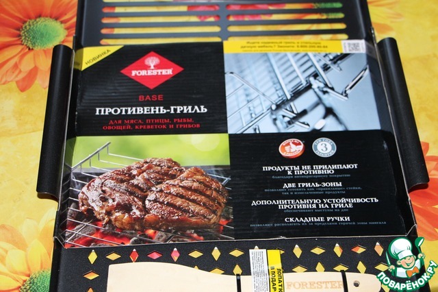 • Жарить будем на противне-гриль FORESTER. Противень имеет 2 гриль-зоны позволяют готовить как стейки, так и более мелкие продукты.