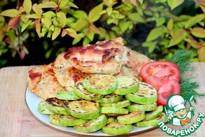 • И индейка, и кабачки жарятся довольно быстро. Как удобно и мясо и гарнир на одном противне!