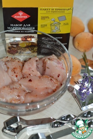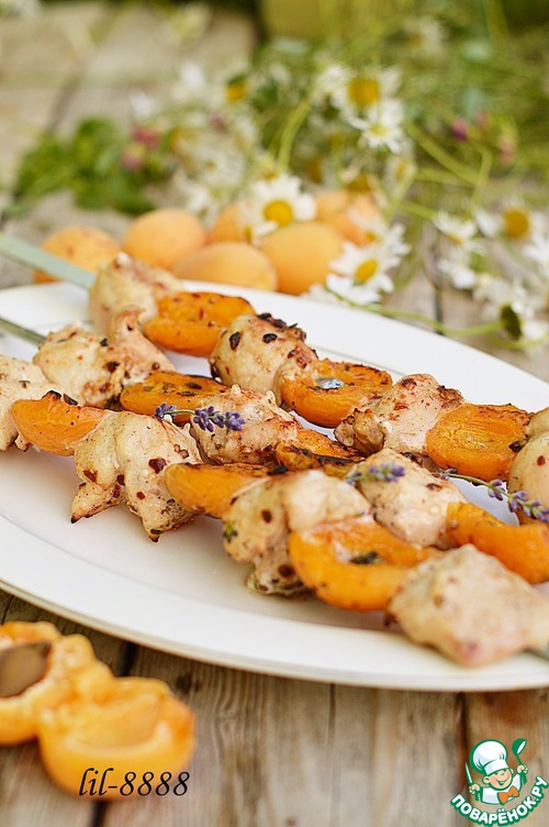 Летний, ароматный шашлык из курицы с абрикосами и цветами лаванды.