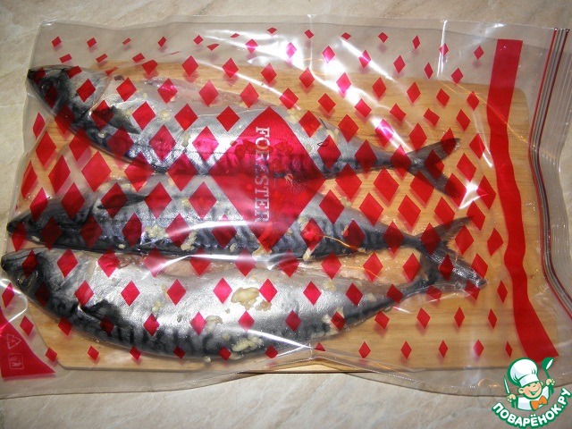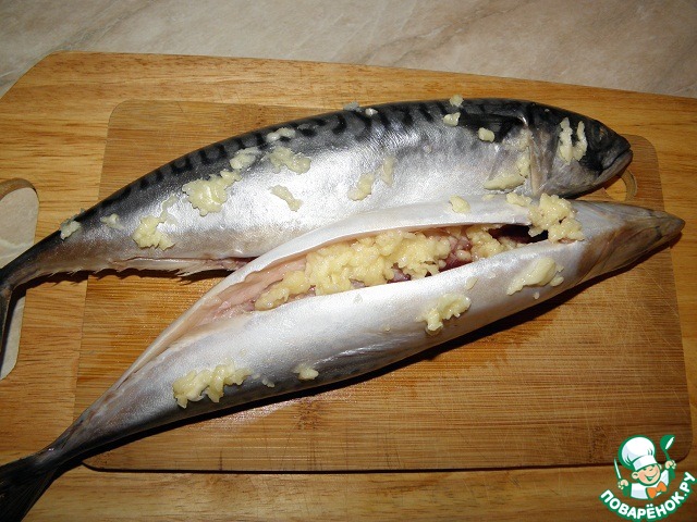 Рецепт «Скумбрия с чесноком "Простое удовольствие"»: