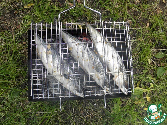 • Подготовить угли, для жарки я пользовалась решеткой FORESTERS. Хорошо смазывать каждую рыбку нашей подготовленной смесью, при каждом переворачивании.