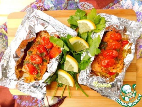 Нежное филе горбуши, пропитанное ароматами специй и овощей-это полноценный обед на свежем воздухе в конвертике из фольги.