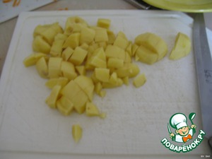 • Чистим и режем кубиками картофель и добавляем в суп. Даем повариться минут 5.