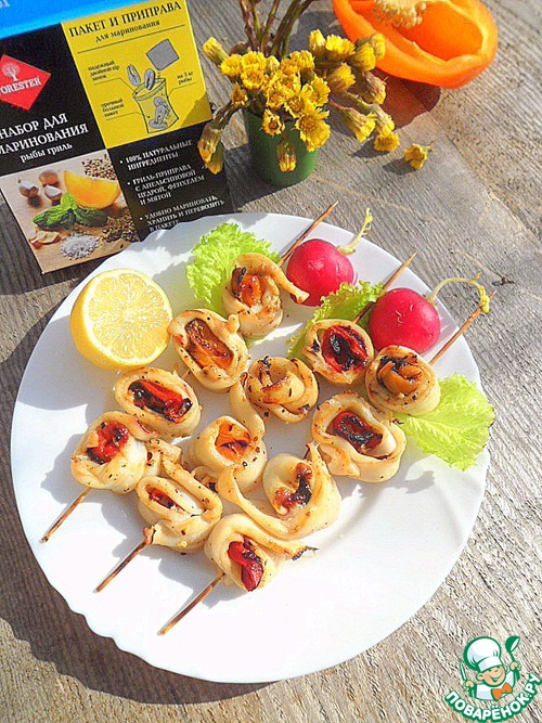 Рецепт «Маринованные кольца кальмаров на гриле»: