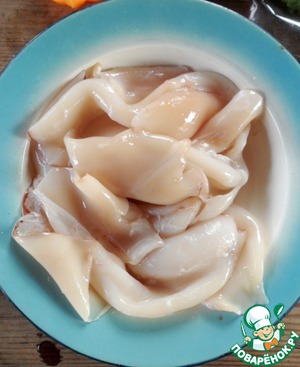 • Кальмары очистить.