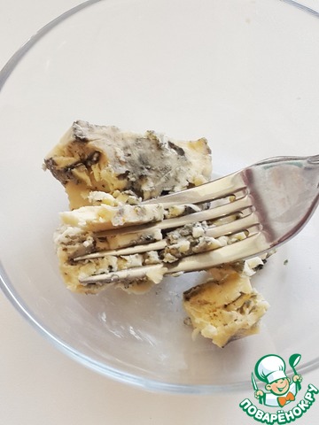 Для соуса - голубой сыр разомните вилкой