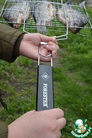 Готовить карасей будем на решетке. Я использовала решетку "Форестер" - у нее специальная сталь и она очень удобна в использовании. Длинная удобная ручка позволит не обжечься при готовке на мангале.