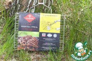 Для приготовления использую универсальную решетку, размер рабочей поверхности которой составляет 26х35 см, для нашей семьи это оптимальный размер. Удобная для обхвата ручка предохраняет руки от ожогов и помогает легко переворачивать решетку. Усики-фиксаторы обеспечивают устойчивое положение на мангале.