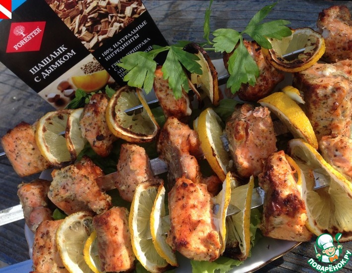 Рецепт «Быстрые шашлычки из кижуча по-средиземноморски»: