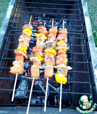 В сезон шашлыков, мы чаще всего жарим мясо или курицу. Совсем позабыв про рыбу. Такие шашлычки мы делали первый раз и точно не последний. Нежное рыбное филе очень хорошо сочетается с печеным перцем и томатами, а лимон неотъемлемая часть рыбных блюд. Думаю, что для этих шашлычков, вполне подойдет любая красная рыба, главное, чтобы она была свежая. В приправе от Forester собраны отличные специи и морская соль. Замариновать в ней рыбу проще простого.