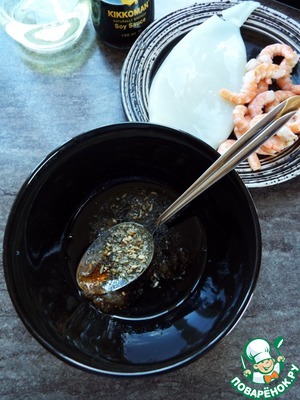Выложить морепродукты в маринад.