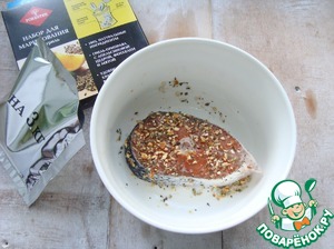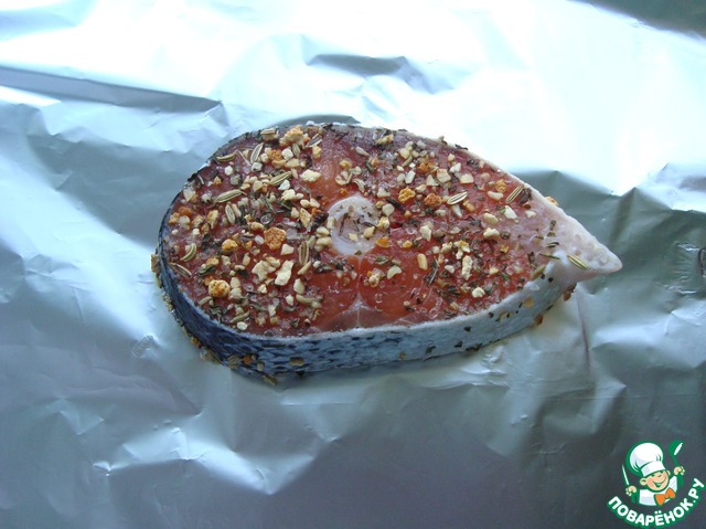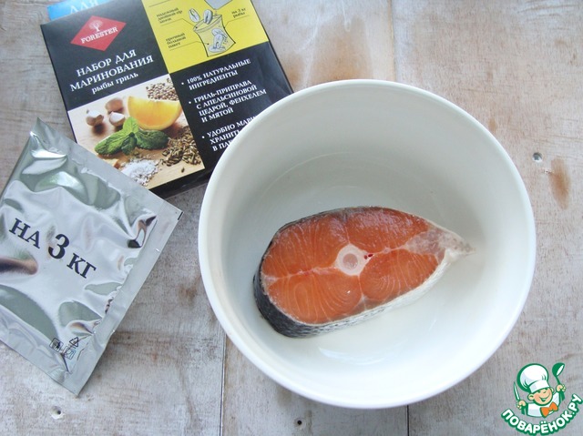 - Семга (стейк, хороша будет форель, лосось) — 200 г