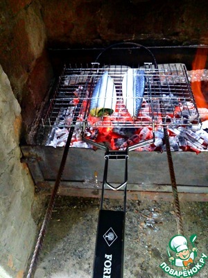Подготовить угли. Выложить рыбку на решетку и запекать над углями до готовности 15-20 минут.