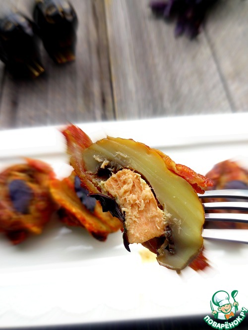 Рецепт «Шампиньоны с кетой в беконе»: