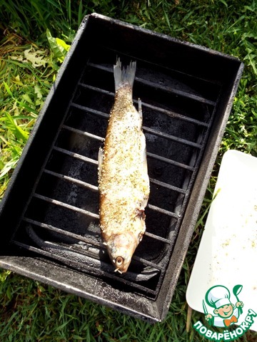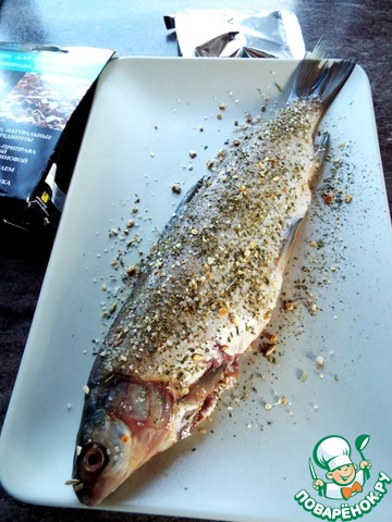 Посыпать с двух сторон приправой и немного добавить в брюшко.