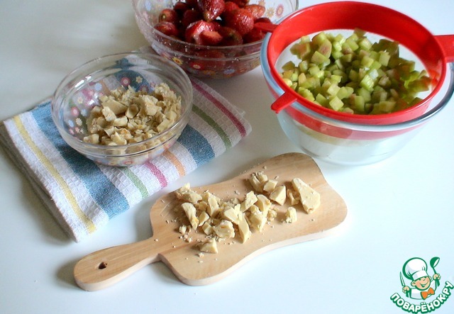 Ингредиенты для «Рулет с ревенем, клубникой и белым шоколадом»:
