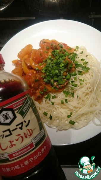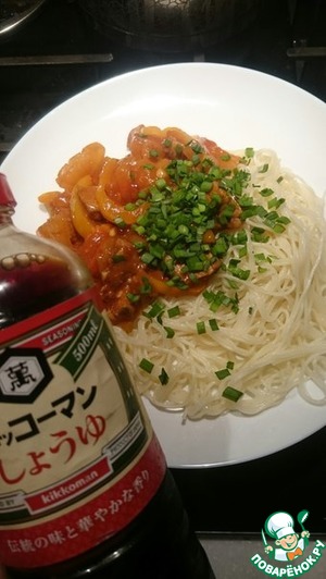 Готовое блюдо можно сбрызнуть соевым соусом,