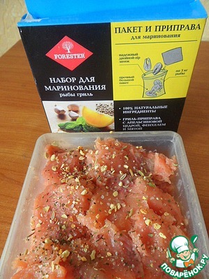 - Приправа ("Набор для маринования рыбы гриль" от компании FORESTER) — 1/2 пакет.