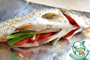 - Специи (ТМ Forester к рыбе (соль морская, цедра апельсина, сахар, фенхель, чеснок, мята, перец белый)) — 1,5 ст. л.