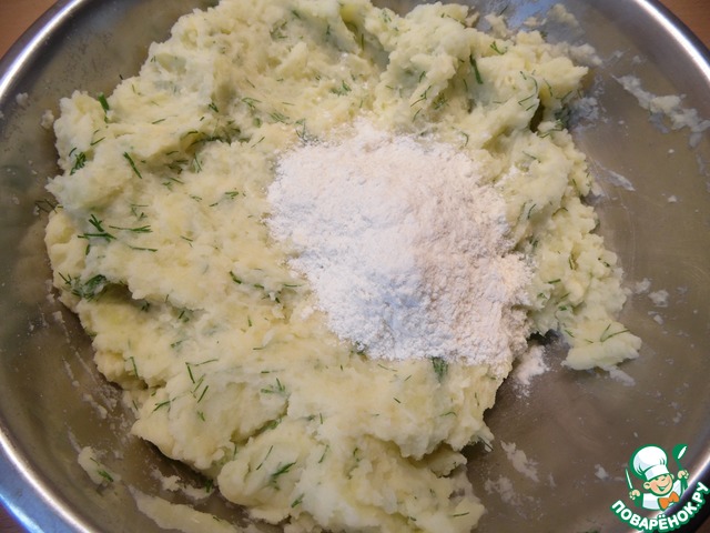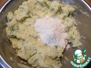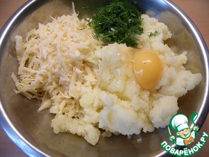 Пюре смешать с яйцом, натертым на крупной терке сыром и измельченным укропом.