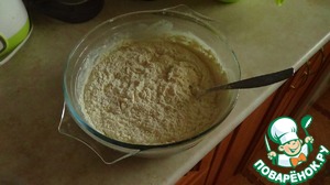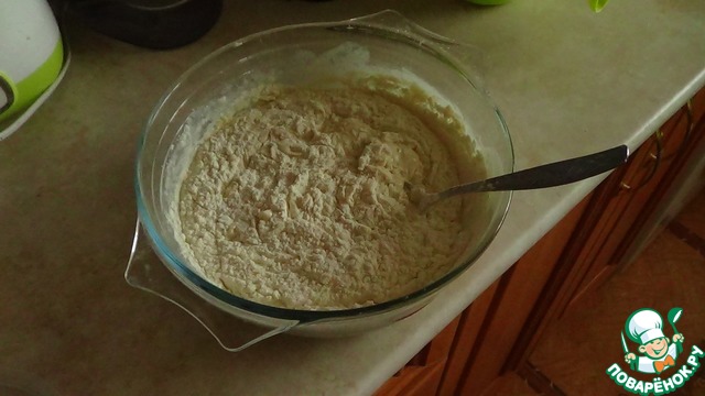 С утра достаем закваску из холодильника-у меня кефирная, ее рецепт есть на нашем сайте, согреваем полчасика и кормим 1:1:1, у меня 200г закваски+200мл сыворотки молочной+200г муки, размешать до густого теста, оставить для подьема