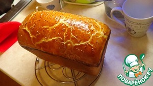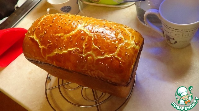 смазала верхушку сиропом и посыпала семенами горчицы и выпекала на программе Выпечка 55 минут (она без замеса).