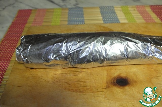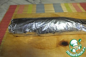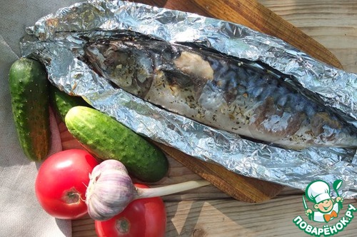 Плотно заворачиваем скумбрию в фольгу, чтобы не было дырочек.