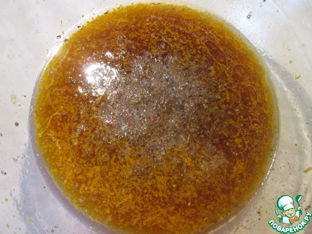 Время приготовления указано без учета времени маринования курицы. Итак, готовим маринад: смешать бренди ( у меня был бальзам на травах " Бугульма " ), цедру с двух и сок из трех апельсинов, мелко нарубленный чеснок, соль ( солить советую хорошо, иначе будет преобладать сладкий вкус апельсина в маринаде ), перец, растительное масло.