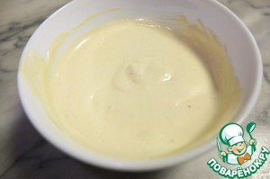 Для соуса смешиваем горчицу со сметаной, солим. -