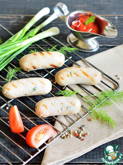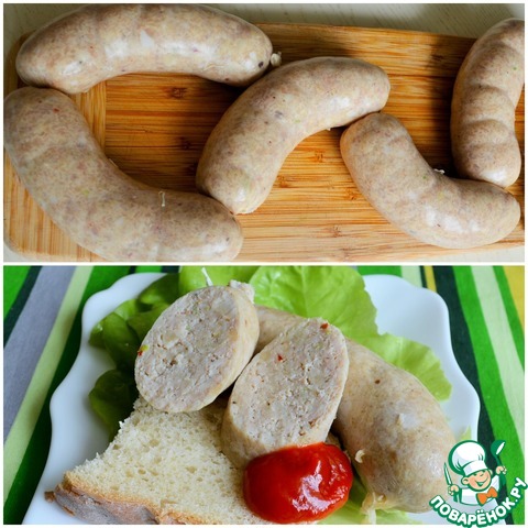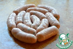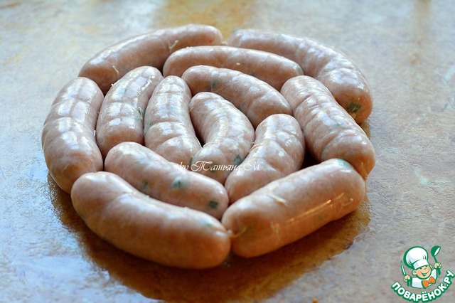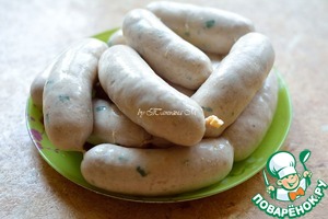 Сформировать методом перекрутов в разные стороны небольшие порционные сардельки, длиной 10-13 см;
