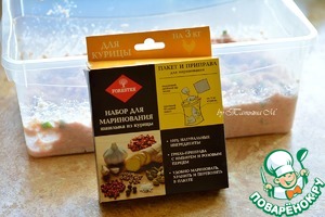 - Специи (ТМ Forester к курице (морская соль, паприка, чеснок, имбирь, сахар, зира, кориандр, перец розовый, перец ямайский, перец черный, корица, кардамон)) — 2 ч. л.