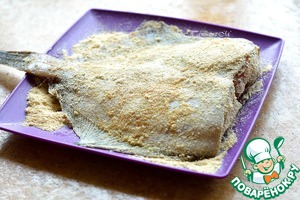 Хорошо запанировать камбалу в сухарях с обеих сторон;