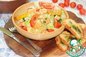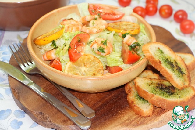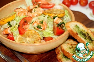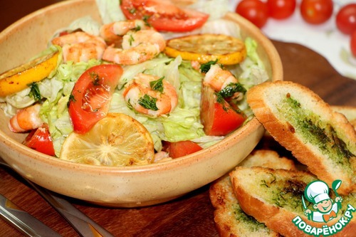 Салат с креветками-гриль и кростини