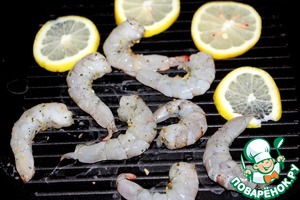 Жарить креветки 2-3 минуты, лимон 3-4 минуты,