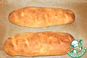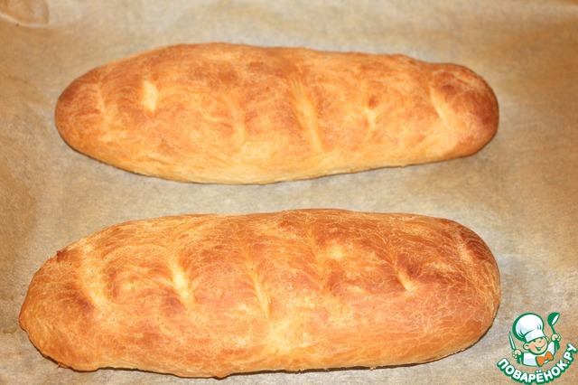 Багет, у меня домашний свежеиспеченный хлеб, порезать ломтиками.