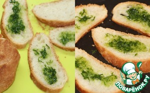 - Багет (у меня домашний, свежеиспеченный) — 5 ломт.