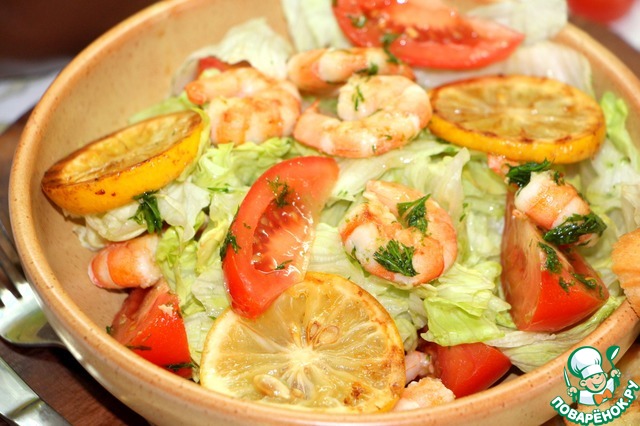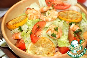 Много креветок просто так на компанию не пожаришь, уж больно выходит дорого. А хотелось морепродуктов. Вот что напридумывала, и так вышло изумительно, что пожалуй повторю и не раз. Замаринованные, потом обжаренные вместе с лимонами креветки получились наивкуснейшие. А салат ярким и почти праздничным. Жаль, что не на свежем воздухе.