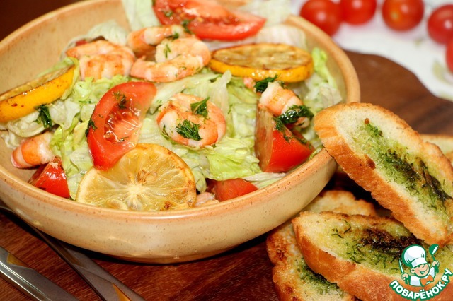 Рецепт «Салат с креветками-гриль и кростини»: