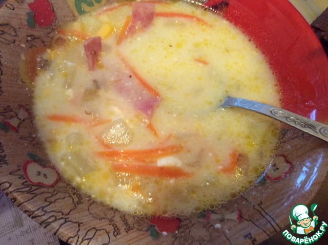 Рецепт этого супа я нашла в книге "Кулинарные рецепты за 30 минут". Это сытное и согревающее блюдо, которое придется к любому столу. Для ее приготовления можно использовать консервированную или свежую кукурузу, а также мороженую. Молоко и сливки придают похлебке насыщенный вкус и аромат, а бекон добавляет пикантность.