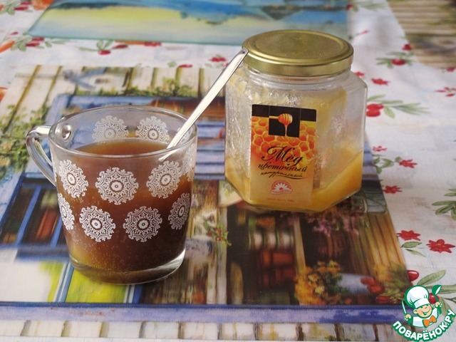 Квас слегка нагреть и размешать в нем мед. Вылить в миску.