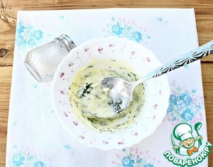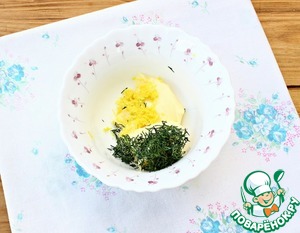 Приготовим ароматное масло. В сливочное масло (комнатной температуры) добавим цедру лимона и мелко нарезанную зелень (у меня укроп), перемешаем.