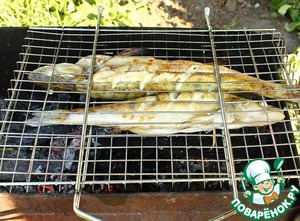 Смазываем судаков с обеих сторон небольшим количеством растительного масла и выкладываем на решетку-гриль, тоже смазанную растительным маслом.