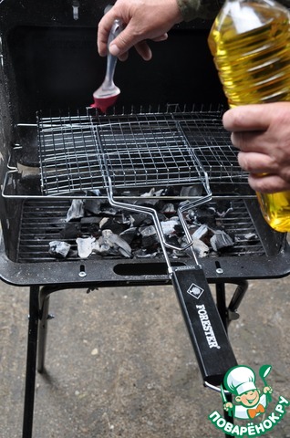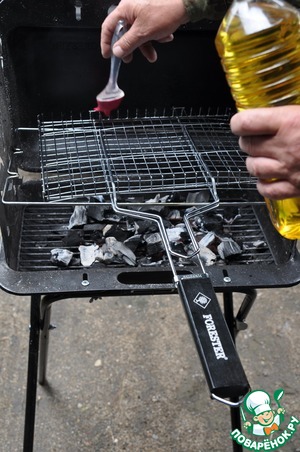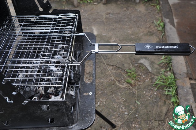 • Берём мангал, разжигаем угли. Когда угли прогорят, ставим решётку Forester.