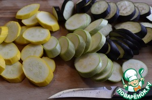 Нарезать помытые кабачки кружочками толщиной не менее 1 см. -