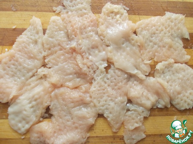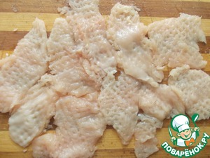 Грудку я порезала на пластинки и отбила.