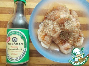 Замаринуем в соевом соусе и розмарине, отставим в сторону.