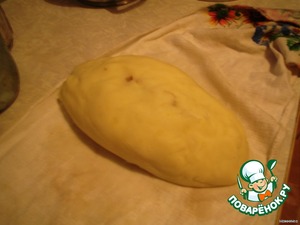 Приподнимая края салфетки, слепить края. Нужно, чтобы весь фарш оказался внутри без вкраплений в картофель.