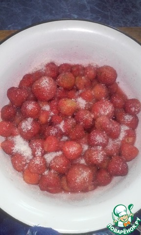 Сначала моем, перебираем клубнику и засыпаем ее сахаром на 3 часа. за это время мы успеем и основу-корзинку испечь и охладить её