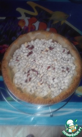 Теперь, чтобы наша корзинка не расплылась, выкладываем ее бумагой для выпечки и заполняем фасолью.