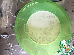 Подогреть слегка воду с молоком, добавить дрожжи, хорошо все помешать.